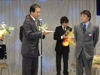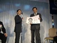 | おおとりは理事長!! | 記念品と花束贈呈です! | 卒業生から次年度渡辺理事長に記念品贈呈 |
