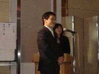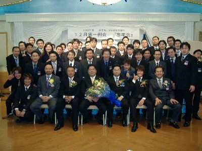 | 忘年会の部始まり〜! | 醍醐OB会長の乾杯です! | 南君から菊間直前に贈る言葉 |