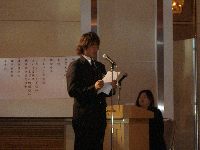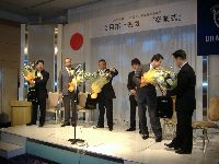 | 卒業生の入場です! | JCIクリード唱和の片岡君 | JC宣言の丸茂君 |